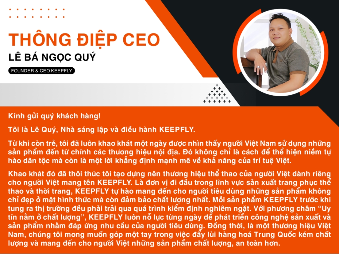 Tất cả sản phẩm KEEPFLY đều được sản xuất 100% tại Việt Nam, tự hào làm ra từ khối óc và bàn tay con người Việt Nam.